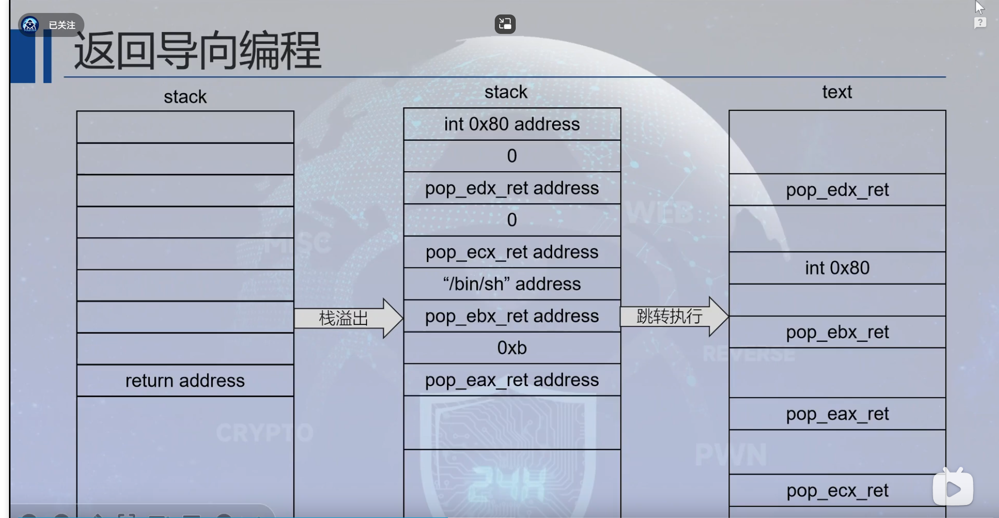 通过构造execve的ROP链,实现攻击